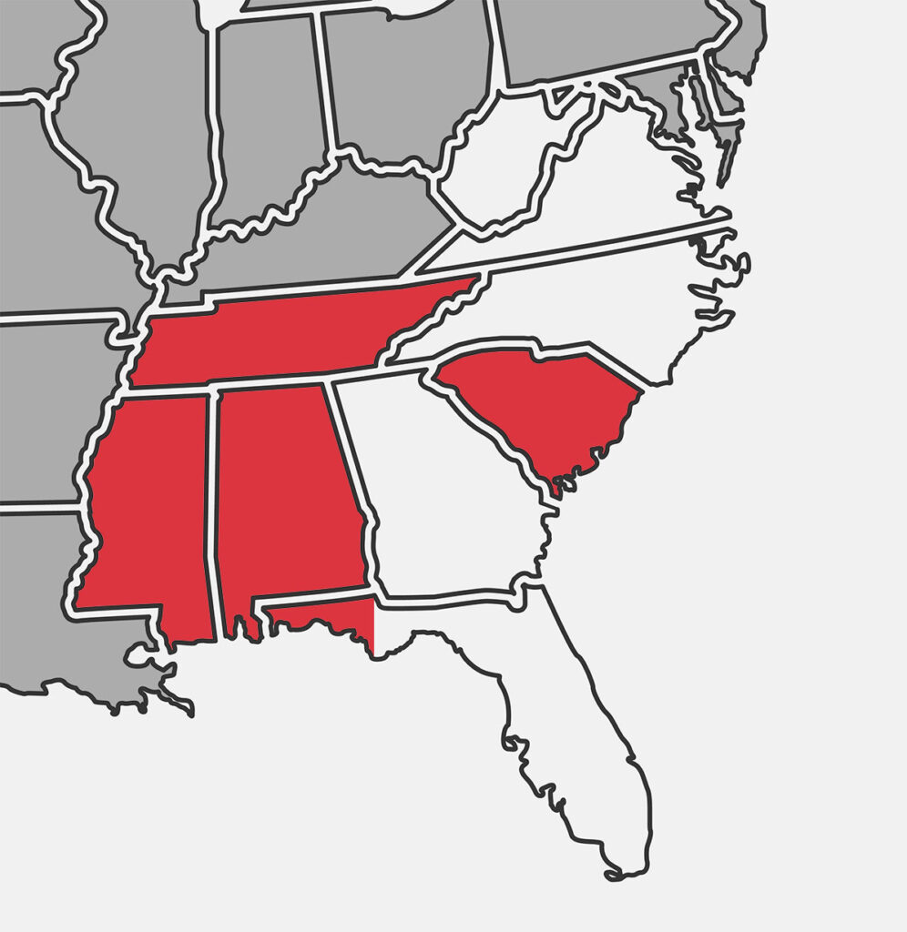 Territory: Alabama, Mississippi, Florida Panhandle, Tennessee